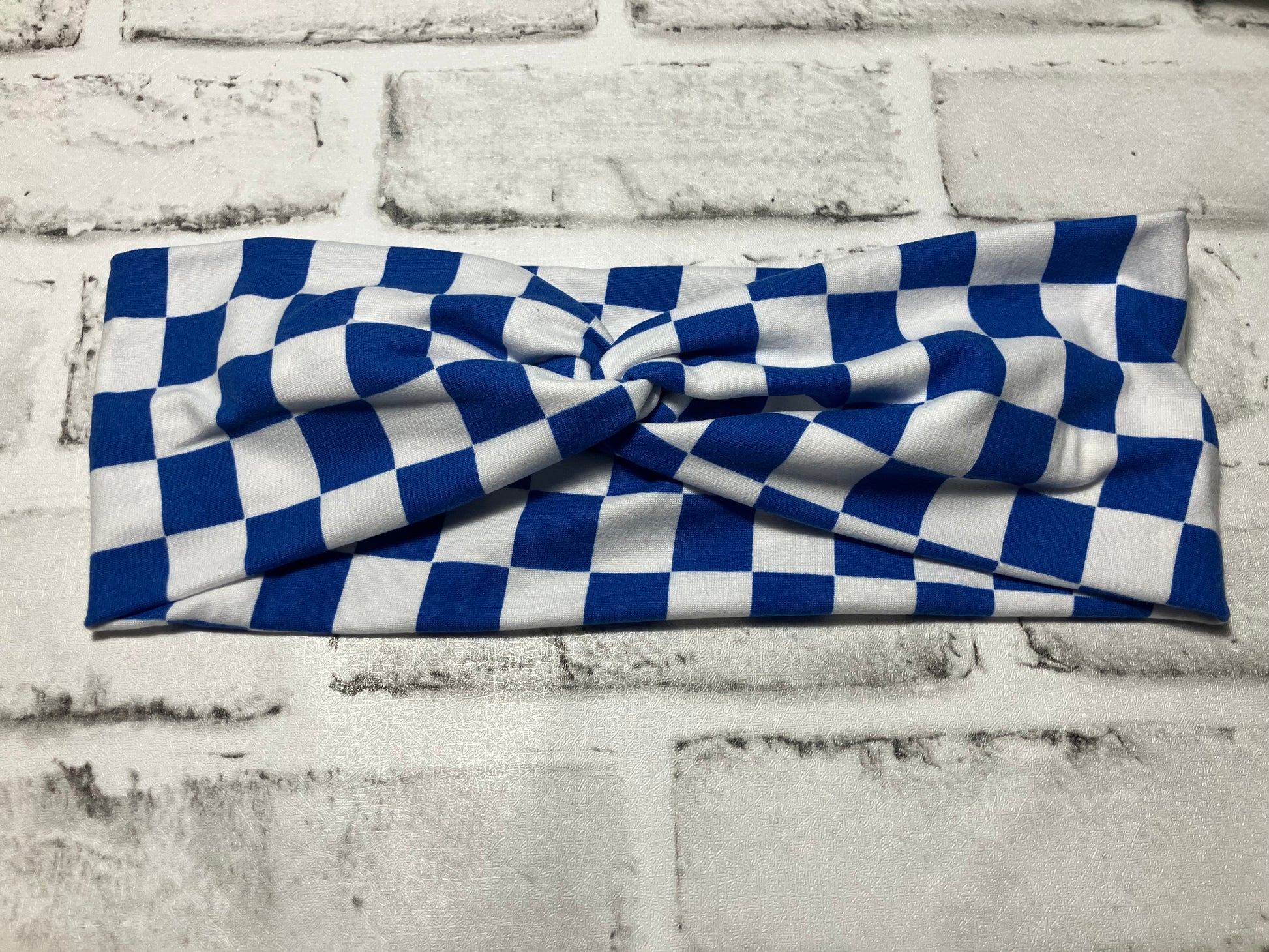 Blue checkered adult headbands