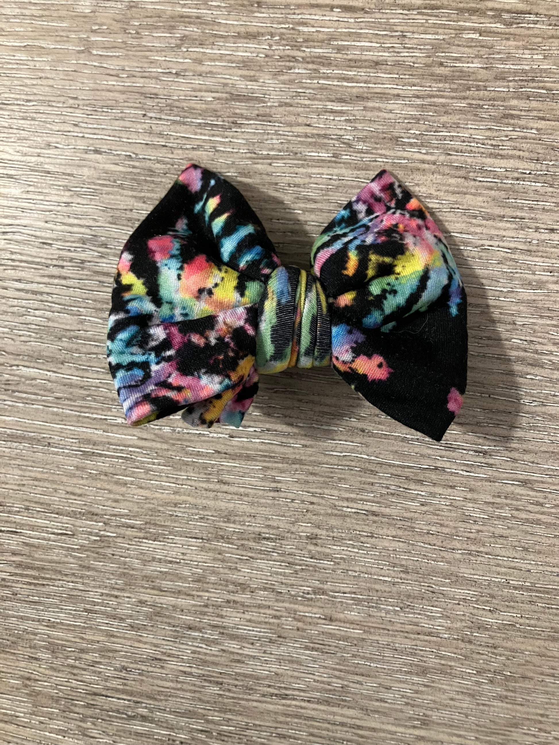 Reverse tie dye clip bow